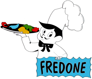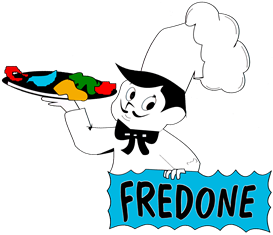 A marca “Fredone” foi inspirada no nome de meu pai, Alfredo, os amigos o chamavam de Alfredo, e alguns mais próximos de “Fredão”. Eu por inspiração criei a Marca Fredone, e a logomarca, “um menino que tem na cabeça uma toca branca por saber cozinhar, no colarinho uma gravata borboleta por ser garçom e saber servir, o motivo desse menino usar bigode apesar de ser criança , tem a maturidade de um adulto para servir a clientela”.